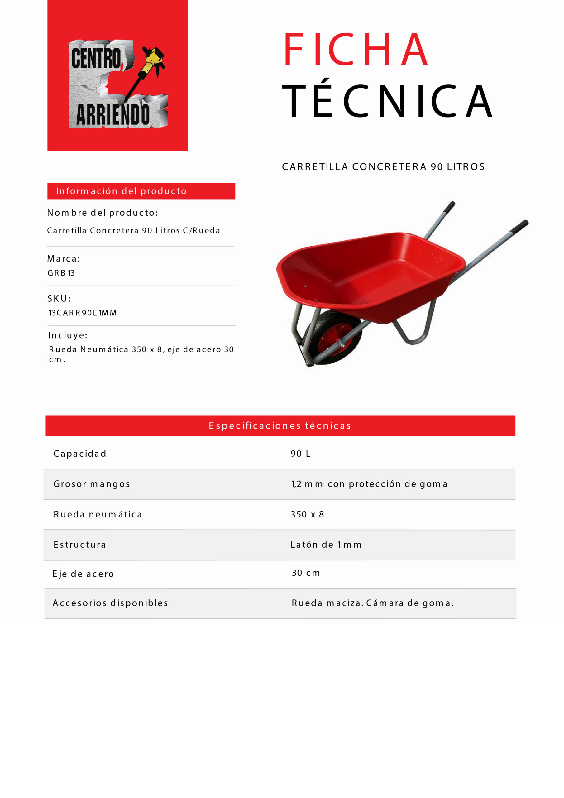 Accesorios disponibles Rueda maciza. Cámara de goma